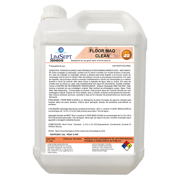 O FLOOR MAQ CLEAN é um detergente concentrado de baixa formação de espuma, ideal para a limpeza diária de pisos laváveis.