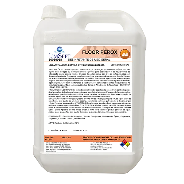 O FLOOR PEROX é um produto versátil e econômico, sendo um desinfetante e limpador concentrado à base de Peróxido de Hidrogênio. Destina-se à limpeza e desinfecção de superfícies laváveis em diversos locais de alto fluxo, como indústrias, shoppings, rodoviárias, metrôs, centros clínicos, universidades, escolas e estabelecimentos institucionais.