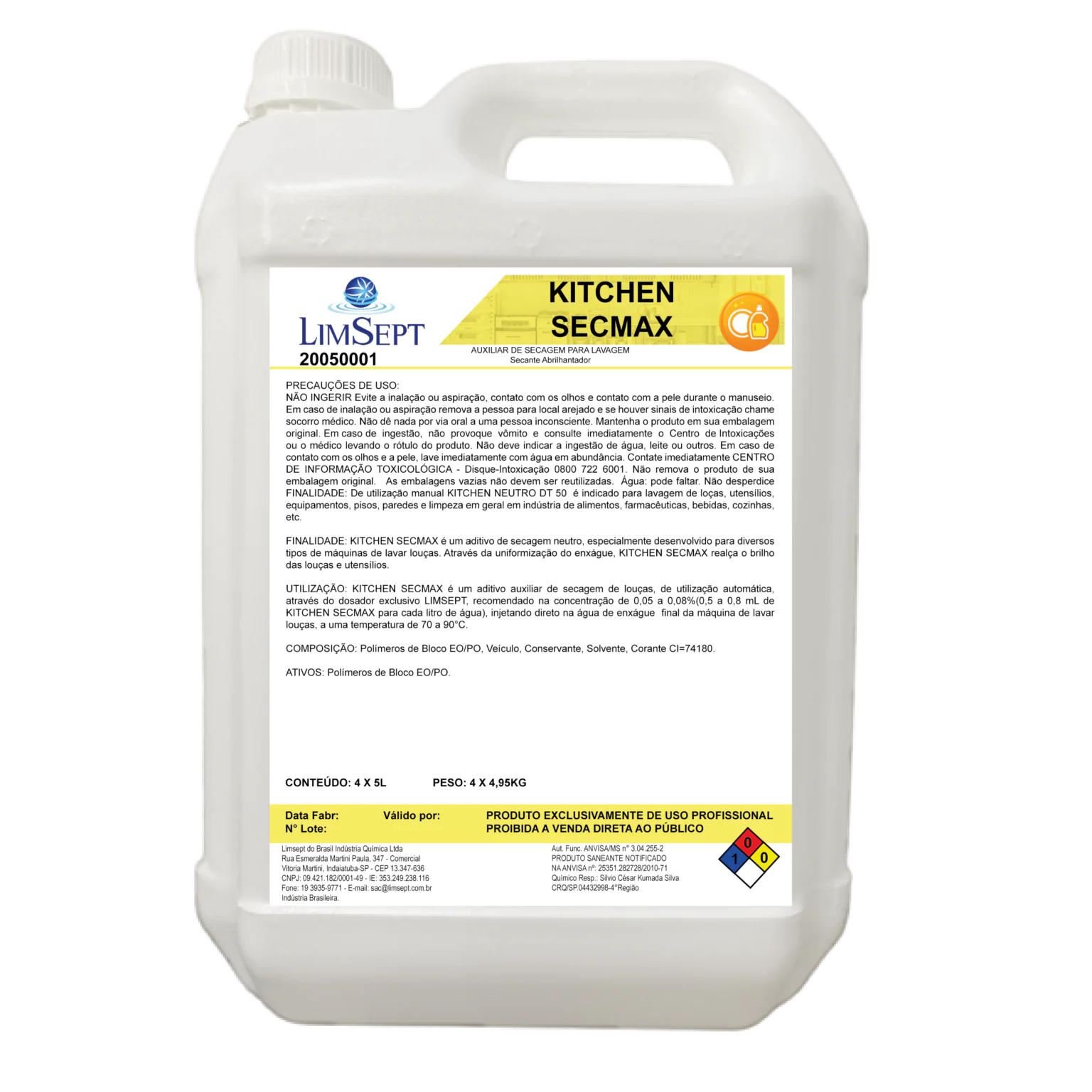 KITCHEN SECMAX é um aditivo de secagem neutro, especialmente desenvolvido para diversos tipos de máquinas de lavar louças. Sua formulação permite excelente resultado de secagem mesmo em baixas dosagens por ciclo de enxágue, realçando o brilho das louças.